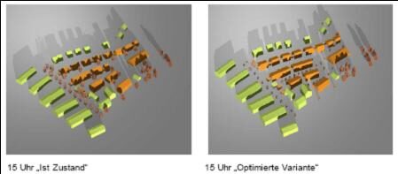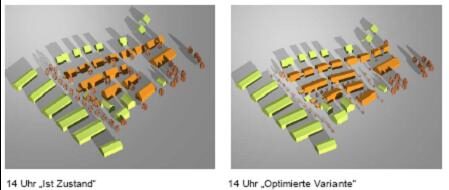 günstigere Situation der Gebäudegruppenanordnung und der Ausrichtung